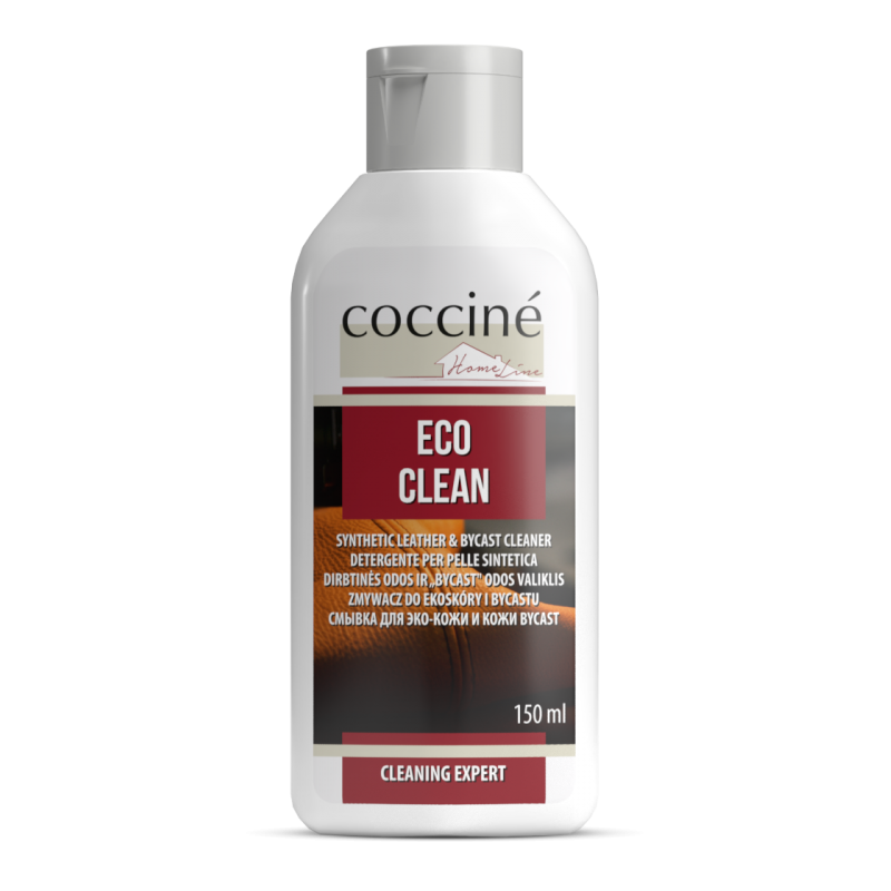 Bezbarwny płyn do czyszczenia powierzchni sztucznej skóry meblowej (typu PU-leather czy bycast). ECOCLEAN to bezbarwny zmywacz do czyszczenia sztucznej skóry meblowej. Usuwa zabrudzenia powstałe w trakcie użytkowania i pozostałości środków konserwujących.