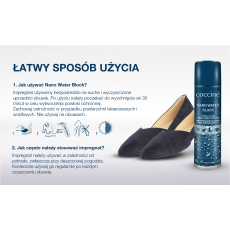 Wyjątkowo skuteczny impregnat w sprayu, chroniący wszystkie rodzaje obuwia skórzanego, zarówno ze skór licowych, łączonych, jak i nubuków, zamszu, skór sztucznych, tekstylnych oraz odzież sportową czy parasole. Jego pojemna butelka pozwala na wielokrotne wykorzystanie, a więc żadna pogoda nas nie zaskoczy. Skutecznie zabezpiecza przed przemakaniem, tworząc wodoodporną powłokę.