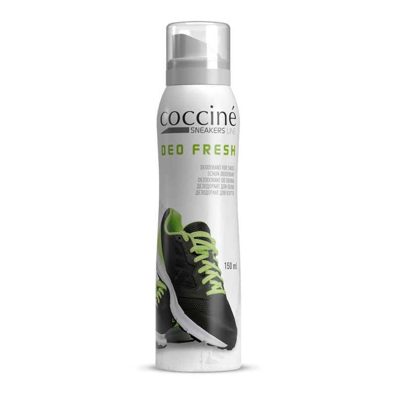 Cocciné Deo Fresh to silny i skuteczny dezodorant do zabezpieczenia sportowego obuwia przed nieprzyjemnym zapachem. Stworzony z myślą o osobach aktywnych preparat z formułą nanocząsteczek srebra i krzemionki posiada wyraźną nutę cytrusów i egzotycznego drzewa. Srebro zapobiega rozwojowi mikroorganizmów, a krzemionka pochłania nieprzyjemne zapachy. Wystarczy spryskać wnętrze buta, aby przez długi czas cieszyć się świeżym zapachem. Dzięki specjalnej konstrukcji kapslogłówki, preparat można aplikować tradycyjnie, lub buteleczką odwróconą o 180st., dzięki czemu dociera do wszystkich zakamarków wnętrza buta.