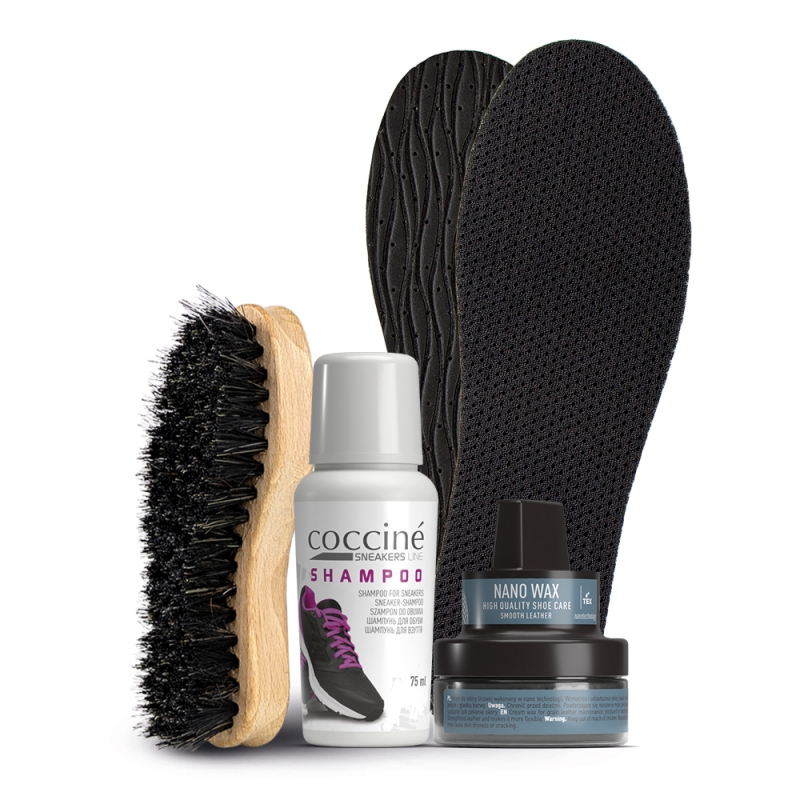 Cocciné Shampoo Sneakers Line to bezbarwny szampon do obuwia, który szybko i skutecznie czyści tekstylia, welur i zamsz. Został stworzony głównie z myślą o sportowym obuwiu, które jest intensywnie eksploatowane w różnorodnych warunkach. Cocciné Shampoo bez problemu radzi sobie z wszelkimi zabrudzeniami jak plamy, osad czy brud, który wszedł w strukturę materiału. Łatwy w użytkowaniu – zamknięty w buteleczce ze specjalną gąbeczką do aplikacji.