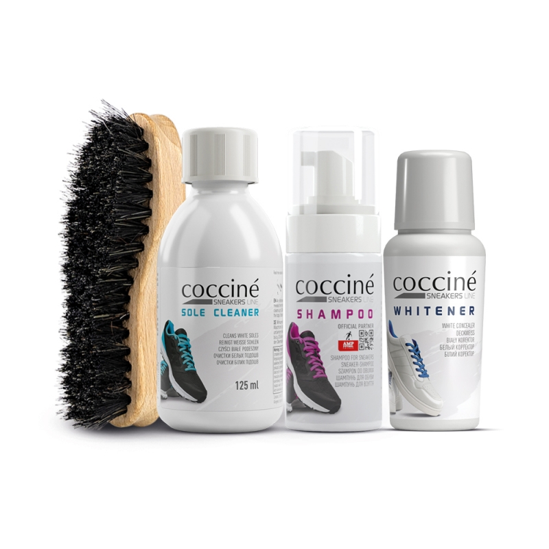 to bezbarwny szampon do obuwia, który szybko i skutecznie czyści tekstylia, welur i zamsz. Został stworzony głównie z myślą o sportowym obuwiu, które jest intensywnie eksploatowane w różnorodnych warunkach. Cocciné Shampoo bez problemu radzi sobie z wszelkimi zabrudzeniami jak plamy, osad czy brud, który wszedł w strukturę materiału. Łatwy w użytkowaniu – zamknięty w buteleczce ze specjalną gąbeczką do aplikacji.
