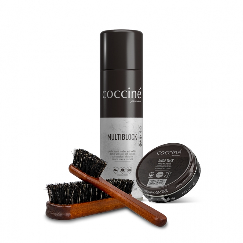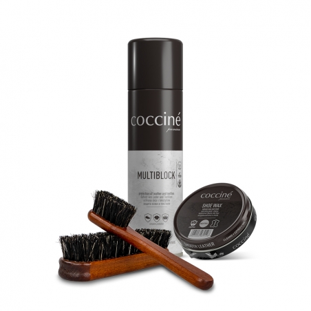 Pasta w tradycyjnej puszce z motylkiem, zawierająca wosk i żywice naturalne sprawia, że obuwie ze skóry licowej zyskuje głęboką barwę i połysk. Znakomicie kryje drobne uszkodzenia skóry, wygładza jej powierzchnię i chroni przed działaniem brudu oraz wody. Pastę należy stosować na skórę wyczyszczoną środkiem Cocciné Leather Cleaner, następnie po wyschnięciu dokładnie wypolerować.