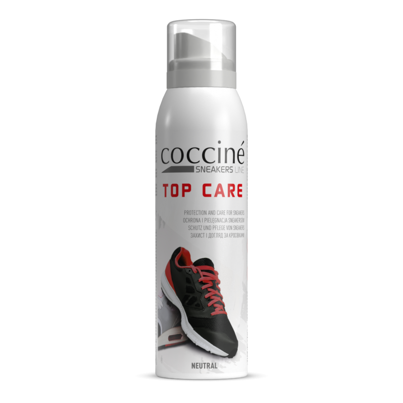 Top Care uniwersalny spray do obuwia typu sneakers. Przeznaczony do skóry naturalnej, eco-skóry, nubuku, siateczki mesh i obuwia z połączonych w/w materiałów. Odświeża wygląd, pielęgnuje i chroni cholewki. Nabłyszcza skóry gładkie. Na nubuku i siateczce przywraca ich żywy odcień.