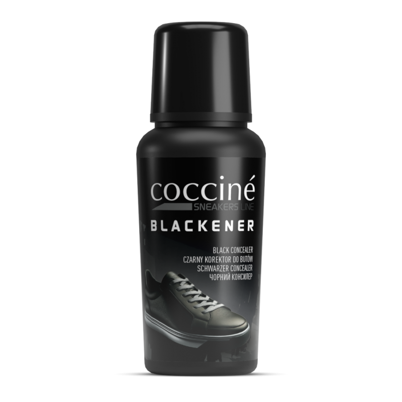 SNEAKERS BLACKENER to czarny korektor w płynie, który doskonale niweluje drobne przetarcia skóry. Wyrównuje i pogłębia czarny kolor, przywraca połysk. Do czarnych skór gładkich, tworzyw sztucznych i podeszw.