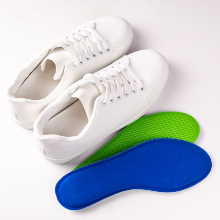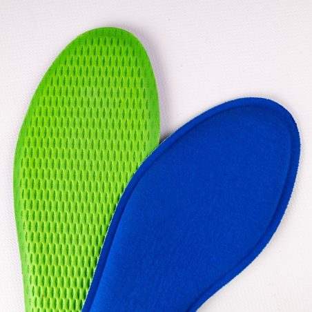 Komfortowa wkładka dla relaksu stóp. Łagodzi nacisk podczas stania i każdego kroku, zmniejszając obciążenia stawu skokowego, kolan, bioder i kręgosłupa. Powłoka z tkaniny poliestrowej zapewnia trwałość i higienę w trakcie użytkowania. Pianka MEMORY FOAM idealnie otula stopę i dopasowuje się do jej kształtu. Zielony lateks usztywnia i zapobiega przesuwaniu się wkładki w obuwiu. Zalecana dla osób z problemami zdrowotnymi, w tym również dla stóp wrażliwych.